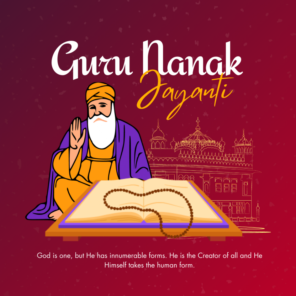 “As we celebrate the birth of Guru Nanak Dev Ji, let’s strive to follow his teachings of kindness, equality, and spirituality. Happy Gurpurab!”