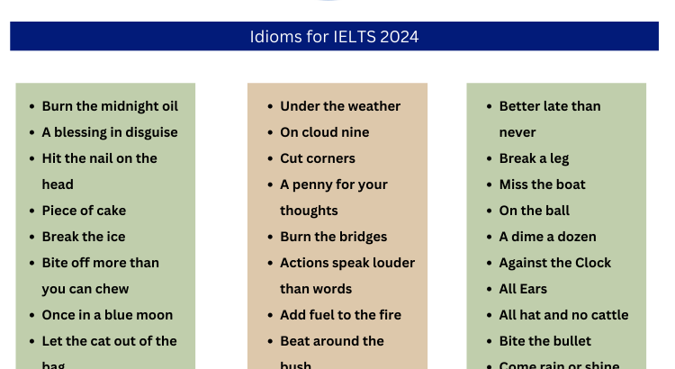 Enhance your IELTS speaking and writing scores with 100+ essential idioms for 2024. Discover expressive language tools to impress examiners and achieve a higher band score. Perfect for IELTS candidates aiming for Band 9 or above.