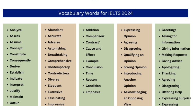 Vocabulary Words for IELTS 2024: with this comprehensive guide on essential vocabulary words. Improve your score in Writing, Speaking, Reading, and Listening with academic, descriptive, and opinion-based words.